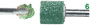 MOLE ABRASIVE ROTATIVE ATTACCO Ø MM 6; IN CARBURO DI SILICIO VERDE; DUREZZA M FORMA CILINDRICA