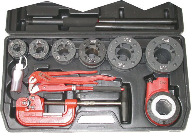Tipo a CRICCO Con bussole attacco ottagonale, intercambiabili con altre produzioni europee. Corpo in acciaio e coperchio di tenuta pettini preciso e sovradimensionato per un'ottimale guida in fase di filettatura. Pettini in acciaio ad alta resistenza (HRC 55-58), riaffilabili. Cricchetto reversibile in acciaio, impugnatura del manico con rivestimento di morbido materiale spugnoso, per una presa più comoda ed efficace.
