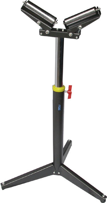 Tipo ad altezza regolabile da mm 750 - 1200. Portata Kg 50. Estremamente robusto e stabile, utile per sorreggere barre o tubi lunghi e pesanti, dando stabilità necessaria per ottenere una perfetta rotazione e filettatura. Per tubi diametro minimo mm 40.