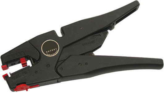 Tipo professionale. Per spelare cavi multipli pluriformi. Regolazione automatica più vite micrometrica per la profondità delle lame in base al diametro esterno delle guaine dei cavi. Asportazione della guaina senza scalfire i conduttori. Lame di taglio in acciaio temprato. Corpo in materiale plastico rinforzato in fibra di vetro leggera e robusta per spelare conduttori rigidi, flessibili e piattine sottili. Lunghezza di spelatura regolabile da mm 3 a 18. Tronca-cavi inserito sulla testa della pinza.