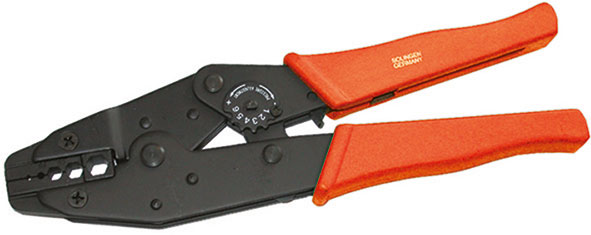 Tipo ad apertura automatica a fine bloccaggio. In acciaio speciale, parti operanti temprate e rettificate. Impugnature rivestite in materiale sintetico. Con dispositivo di sbloccaggio in caso di cablaggi difettosi. Per serrare connettori coassiali BNC-TNC. Per cavi RG58/59/62/71, con conduttore interno mm 1,72 e schermatura mm 5,4 e 6,48.
