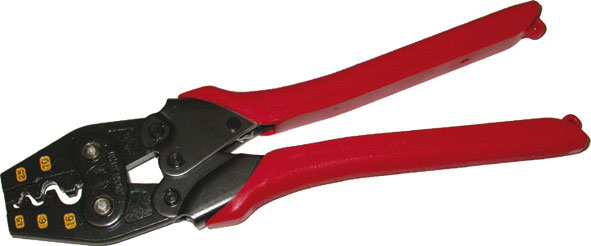 Pinza a doppia leva con movimento a dentatura fine per il fissaggio del capicorda e apertura automatica a fine bloccaggio.