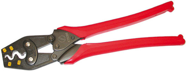 Pinza a doppia leva con movimento a dentatura fine per il fissaggio del capicorda e apertura automatica a fine bloccaggio.Testa in acciaio al CROMO-MOLIBDENO, parti operanti temprate, parti pressanti lappate.Impugnature isolate.