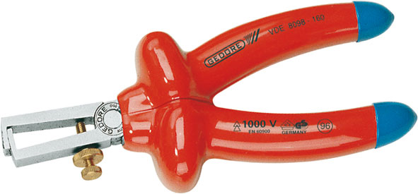 Utensili a isolamento fino a Volt 1000 con marchio di prova VDE - EN 60900. PINZE SPELAFILIIn acciaio speciale temprato a olio. Con regolazione d'apertura mediante vite ottonata.Esecuzione cromata.