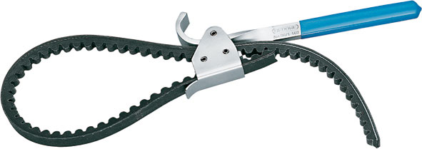 In acciaio speciale. Esecuzione cromata, nastro in gomma rinforzata per il bloccaggio di pulegge per cinghie trapezoidali. Adatte per pulegge di alternatori, pompe acqua, motori elettrici di compressori, lavatrici, macchine utensili ecc. Indicate anche per ruotare l'albero a camme e per smontare filtri olio e gasolio.