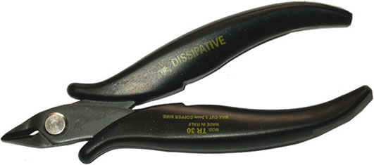In acciaio speciale. Temprati. Cerniera semplice.Impugnature in gomma morbida a grande presa, con molla. Esecuzione brunita.Modello dissipativo 10^7 ÷ 10^9 ohm da utilizzare su circuiti e componenti sensibili alle cariche elettrostatiche.