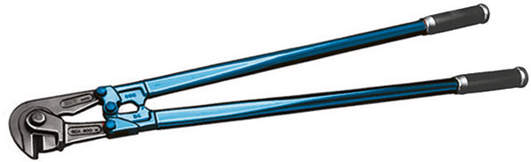 Tipo con taglienti laterali, adatto per taglio di reti in tondino d’acciaioper solette di cemento armato. Lame in acciaio speciale. Manici in tubo d’acciaio.Per tagli fino a R 1330 N/mm^2.