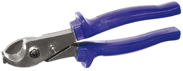 In acciaio al CROMO-VANADIO. Esecuzione cromata, impugnature plastificate. Con fermo di chiusura. Per taglio cavi di rame, d'alluminio e a isolamenti multipli senza deformazione.