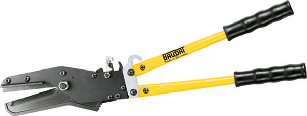 Tipo a cremagliera con cricchetto, a lame lunghe diritte per tagliare cavi piatti, senza deformazioni.Coltelli in acciaio al CROMO-VANADIO di altissima resistenza, bracci in tubo d'acciaio sagomato e impugnature ergonomiche.