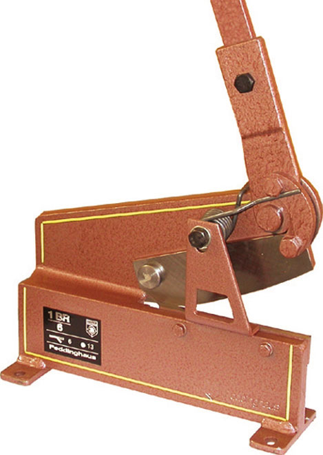 Per taglio di lamiere, ferro piatto e tondo. Dotate di dispositivo antinfortunistico che impedisce la caduta incontrollata della leva.