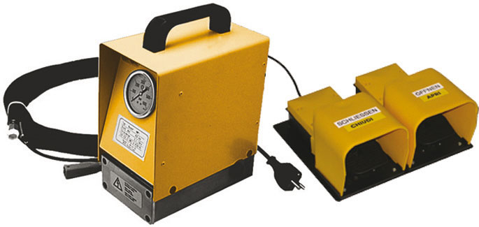 Tipo a motore elettrico, per lavorazioni continue.Corrente monofase a 230 V - 50 Hz. Complete di tubo lunghezza m 2,5 e comando a pedale. Pressione 450 bar.