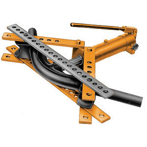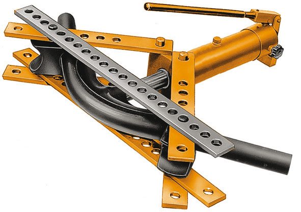Apparecchio per curvare e raddrizzare tubi. Per curve destre o sinistre.Curvano a freddo i tubi gas senza riempimento fino a 90°.Pompa di grande potenza. Completo in cassetta.