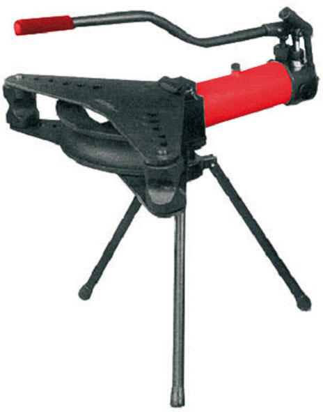 Apparecchio per curvare e raddrizzare tubi DIN 2440. Per curve destre o sinistre.Curvano a freddo i tubi gas senza riempimento fino a 90°.Pompa di grande potenza. Corredato di 3 gambe di supporto e 1 leva di comando con impugnatura.