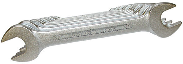In norma DIN 3110 / ISO 3318 - ISO 1085 - ISO 10102In acciaio CROMO-VANADIO.Tipo con due bocche inclinazione 15°.Esecuzione cromata.Confezione in scatola di cartone.