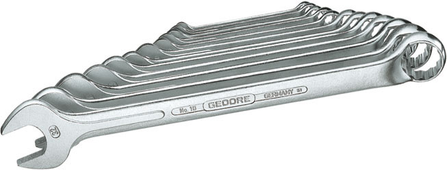 Tipo combinato rinforzato con una bocca esagonale ed una poligonale, con curvatura 10°.Bocca poligonale sottile e profonda. Finitura accurata. Esecuzione cromata.