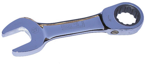 Tipo corto. In acciaio CROMO-VANADIO. Teste diritte, una ad apertura fissa e una poligonale a cricco. Dentatura finissima. Robusta, maneggevole, pratica, di elevata qualità. Finitura accurata. Esecuzione cromata.