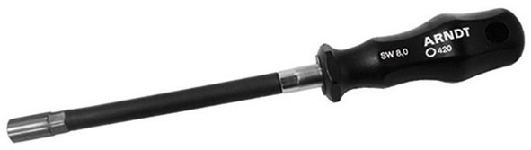 Tipo flessibile. Particolarmente indicato per il serraggio delle fascette. Con bocca esagonale. Flessibile ricoperto in gomma. Impugnatura in plastica, con foro.