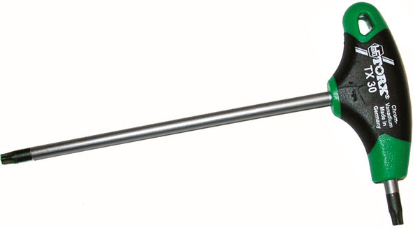 In acciaio speciale. Per viti con impronta TORX. Tipo a 2 teste. Impugnatura a "T" in materiale bicomponente (escl. misure T 45/50) con foro, lama nichelata.