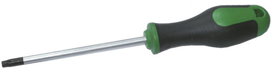 In acciaio al CROMO-VANADIO. Per viti con impronta TORX con foro (Tamper Torx). Impugnatura a giravite in materiale bicomponente (escl. misura T 45) con foro, lama cromata, punta brunita.