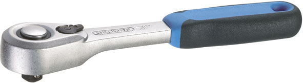 Leva a cricco con levetta per movimenti D+S. Impugnatura in gomma bicomponente. Con sistema di sgancio rapido e sicuro, a pulsante. Dentatura fine.Lunghezza mm 127.