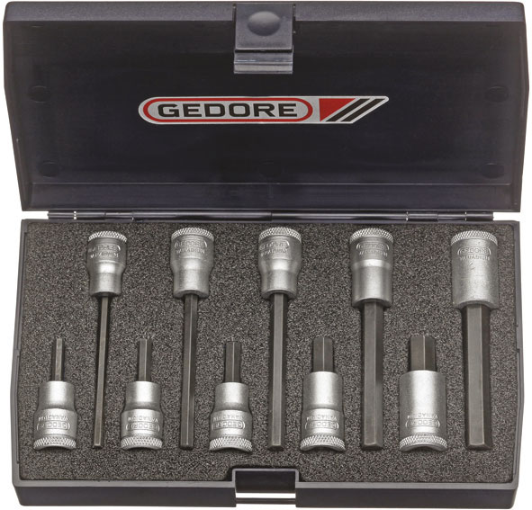 Per viti con esagono interno.Contenuto 10 utensili.Composizione:5 bussole Art. 952 RT mm 4 - 5 - 6 - 8 - 105 bussole Art. 952 RTL mm 4 - 5 - 6 - 8 - 10Assortimento completo.