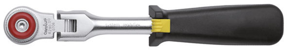 Leva snodata a cricco, ad angolatura variabile. Con disco per movimento D+S.Impugnatura in gomma. Dentatura finissima.Lunghezza mm 225.