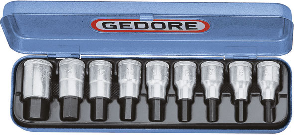 Per viti con esagono interno. Contenuto 9 utensili.Composizione:9 bussole Art. 969 RV da mm: 5 - 6 - 7 - 8 - 9 - 10 - 12 - 14 - 17In cassetta.Assortimento completo.