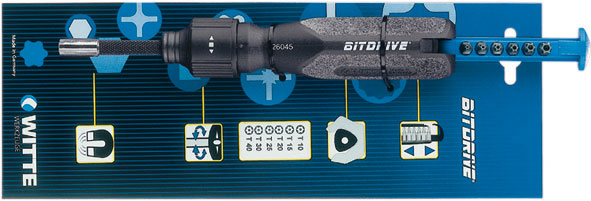 In acciaio al CROMO-VANADIO. Con attacco esagonale per inserti da 1/4".