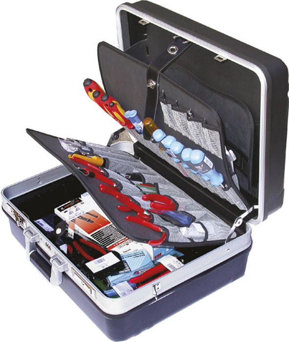 Composto di: 63 utensili 1 valigia Art. 2078 GH 8 1 tester Art. 4482 E 1 pompetta Art. 3268 Z 1 giravite Art. 1912 GA 60A 1 giravite Art. 1912 GA 100 1 giravite Art. 1912 GB 00 1 giravite Art. 1912 GB 0 1 giravite Art. 1898 GA 1 1 giravite Art. 1898 GA 1.5 1 giravite Art. 1921 GAx75 1 giravite Art. 1921 GAx100B 1 giravite Art. 1921 GBx1 1 giravite Art. 1921 GBx2 1 giravite cercafase Art. 1907 GL 1 prendiviti Art. 1881 N 1 giravite Art. 1876 H 125 1 specchietto Art. 1882 GS 1 pinzetta Art. 135 GP 1 pinzetta Art. 136 GB 1 pinza Art. 110 C 1 pinza Art. 110 E 130 1 pinza Art. 110 L 1 pinza Art. 250 Bx160 1 tronchese Art. 560 A 1 tronchese Art. 560 C 1 forbice Art. 656 B 1 spelafili Art. 195 GD 1 pinza Art. 205 G 1 pinza Art. 364 G 175 1 portaseghetto Art. 2615 G 1 martello Art. 2703 G 200 1 saldatore Art. 3252 ZFA 1 rocch. stagno 3361GBx1,5 1 flessometro Art. 4141 BAx2 1 coltello Art. 662 B 1 chiave Art. 1932 GR 4 1 chiave Art. 899 GL 5 1 chiave Art. 899 GL 5.5 1 chiave Art. 899 GL 6 1 chiave Art. 899 GL 7 1 sr. 6 lime Art. 2306 G 140 1 chiave Art. 822 150 1 sr. 7 chiavi Art. 914 GD 7 1 chiave Art. 862 G 4 1 chiave Art. 862 G 5 1 tagliacavi Art. 613 1 cesoia Art. 666 1 chiave Art. 870 GR 6x7 1 chiave Art. 870 GR 8x9 1 chiave Art. 870 GR 10x11 1 chiave Art. 870 GR 12x13 1 chiave Art. 870 GR 14x15 1 chiave Art. 870 GR 16x17 Assortimento completo.