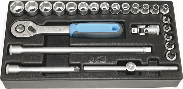 Larghezza per profondità modulo mm 157,5x310. Contenuto 24 pezzi escluso modulo: 1 pz. cadauno Art. 952 RA da mm 6-7-8-9-10-11-12-13-14-15-16-17-18-19 1 pz. cadauno Art. 952 RT da mm 4-5-6-8-10 1 pz. Art. 953 E 1 pz. Art. 953 F 1 pz. Art. 953 H 1 pz. Art. 953 I 1 pz. Art. 953 T.