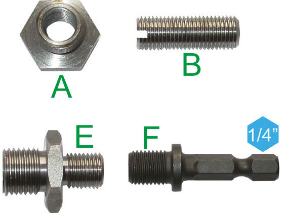 Tipo per trasformare un mandrino con attacco filett. femmina 1/2x20 in filett. femmina 3/8x24.