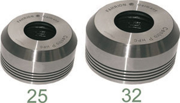 Per pinze ER DIN 6499/ISO 15488. Per attacchi DIN 6535 e per diametri pieni anche con lubrificazione interna. Di altissima precisione, ad altissima tenuta, garantiscono la massima centratura di utensili come frese, punte, svasatori, alesatori, bareni ecc. con i più alti momenti torcenti. La perfetta esecuzione della ghiera a filetto trapezoidale e a doppia guida lunga garantisce la massima centratura, l'ottimale precisione di rotazione e ripetibilità, l'ideale tenuta e la facile sostituzione delle pinze. Utilizzati in combinazione con le pinze orig. Fahrion Art. 1561 GL-N assicurano una precisione del sistema minore o uguale a 8 µm.