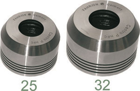 Per pinze ER DIN 6499/ISO 15488. Per attacchi DIN 6535 e per diametri pieni anche con lubrificazione interna. Di altissima precisione, ad altissima tenuta, garantiscono la massima centratura di utensili come frese, punte, svasatori, alesatori, bareni ecc. con i più alti momenti torcenti. La perfetta esecuzione della ghiera a filetto trapezoidale e a doppia guida lunga garantisce la massima centratura, l'ottimale precisione di rotazione e ripetibilità, l'ideale tenuta e la facile sostituzione delle pinze. Utilizzati in combinazione con le pinze orig. Fahrion Art. 1561 GL-N assicurano una precisione del sistema minore o uguale a 8 µm.