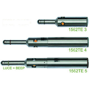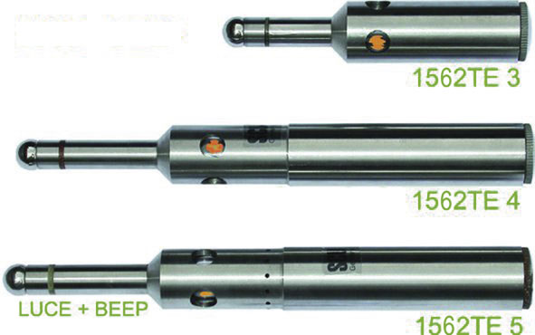 Grandezze 3 e 4 con segnale luminoso al momento del contatto col pezzo. Grandezza 5 con segnale luminoso e acustico al momento del contatto col pezzo. Completi di batteria. Strumenti utilizzati per definire i centri di foratura rispetto al mandrino della macchina e per l'allineamento delle superfici di riferimento del pezzo o dei profili. Sfere tastatrici in acciaio speciale temprato Ø mm 10.