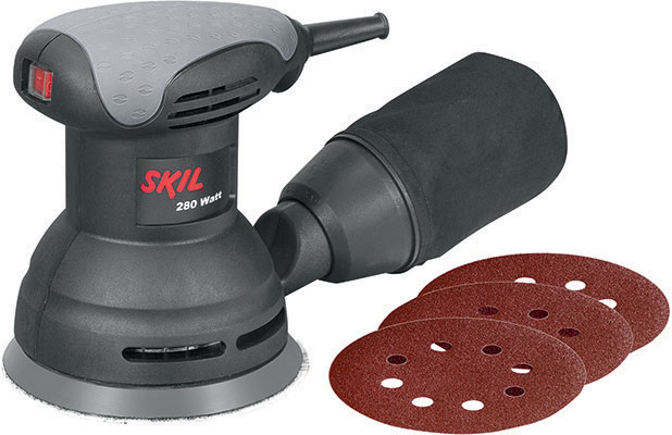 Aspirazione integrata. Con cassetto raccoglipolvere senza filtro, impugnatura supplementare regolabile per un ottima presa confortevole e adattatore per impiego con aspiratore. Fornito con 15 dischi abrasivi, velcrati a 8 fori.
