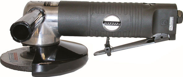 Tipo ad angolo. Con disco orizzontale e protezione. Per troncare e smerigliare metalli. Corpo in lega leggera con doppia impugnatura per un perfetto bilanciamento. Scappamento laterale silenziato. Potenza a 6 bar: kW 0,4.