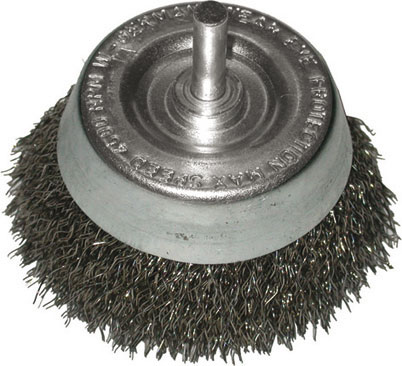 Tipo in filo d’acciaio HSS ondulato, ad alta resistenza, a tazza con attacco cilindrico Ø mm 6, Ø fili mm 0,30.