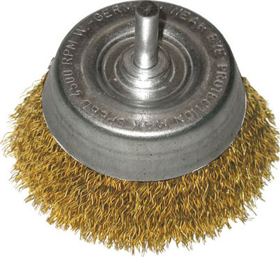 Tipo in filo di ottone ondulato, a tazza con attacco cilindrico Ø mm 6, Ø fili mm 0,30.