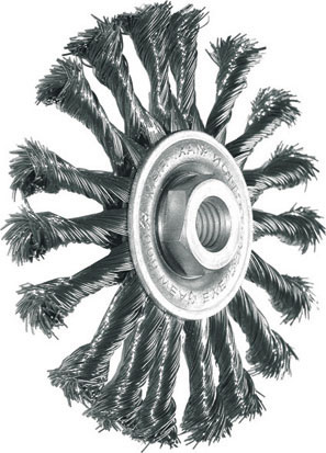 Tipo a disco con fili d’acciaio temprato, ritorti. Ø fili mm 0,40. Con foro filettato M14.
