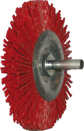 Tipo in filo di resistente nylon, ricoperto di graniglia abrasiva. Per sbavare, pulire, lucidare, superfici non metalliche e metalliche. Grana 80 (colore rosso) con abrasivo più aggressivo per sbavare. Grana 150 (colore grigio) con abrasivo meno aggressivo per pulire e lucidare. Velocità giri/min. 4500.