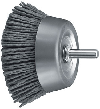 Tipo in filo di resistente nylon, ricoperto di graniglia abrasiva. Per sbavare, pulire, lucidare, superfici non metalliche e metalliche. Grana 80 (colore rosso) con abrasivo più aggressivo per sbavare. Grana 150 (colore grigio) con abrasivo meno aggressivo per pulire e lucidare. Velocità giri/min. 4500.