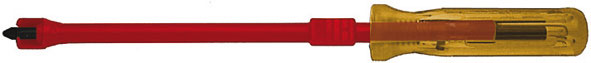 Per collocare viti in posizione difficilmente accessibili. Incavo portavite rinforzato, manovrabile dalla base della lama. Impugnatura in plastica infrangibile e lama in CROMO-VANADIO.