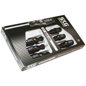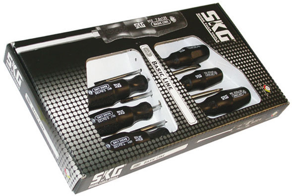 Composizione di 6 giraviti, in scatola cartone.1 giravite punta piana Art. 1970 GAx1003 giraviti punta piana Art. 1970 GE 100 - 125 - 150.2 giraviti punta a croce PH Art. 1970 GP 1 - 2.L'assortimento.