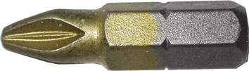 Taglio a croce Pozidriv. Con rivestimento TIN giallo per la massima durata. Lunghezza totale mm 25.