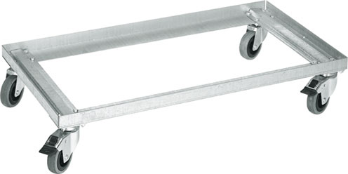 Telai porta-bauli, in lamiera d’acciaio, con 4 ruote di cui 2 con freno. Forniti smontati.