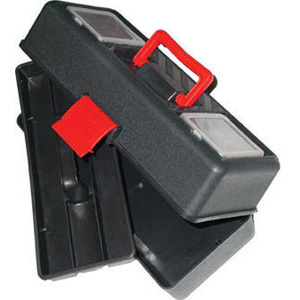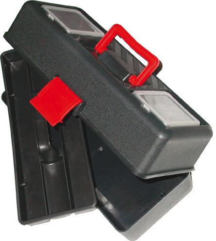 Tipo professionale in resistente polipropilene. Indeformabili, infrangibili, antiruggine, antiurto. Robuste chiusure a scatto, stabili cerniere. Ergonomica, confortevole e robusta maniglia a scomparsa. Ampio vano portautensili e vaschetta estraibile.
