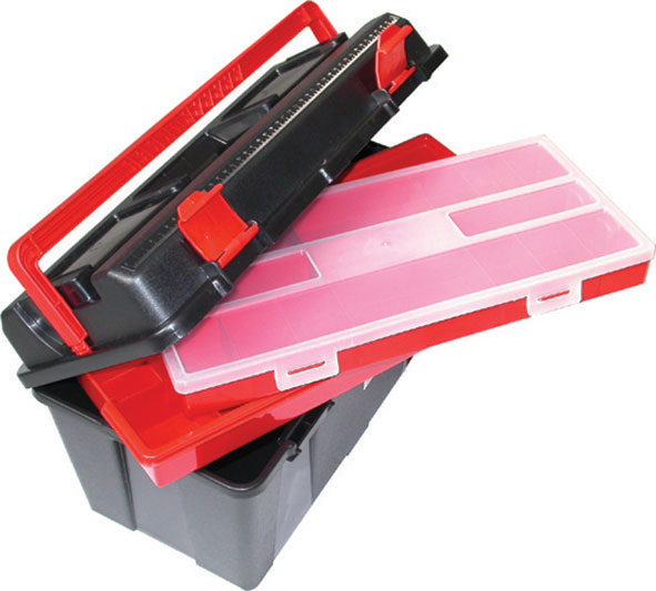 Tipo professionale in resistente polipropilene. Indeformabili, infrangibili, antiruggine, antiurto, antiolii e acidi. Vano di stivaggio, pratica vaschetta estraibile e contenitore porta-minuterie estraibile. Chiusura ermetica a scatto per la massima sicurezza e impermeabilità. Robusto maniglione ripiegabile a scomparsa con funzione di chiusura di sicurezza quando è abbassato e attacco per lucchetto.