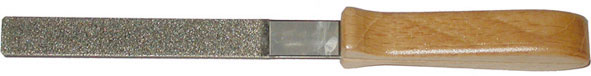 Tipo piatto sottile diamantato, particolarmente indicato per scanalature e spazi molto ristretti. Lunghezza totale mm 180, larghezza mm 13, superficie diamantata mm 80, con impugnatura. Grana media (D126).