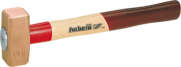 In rame, con manico in legno Hickory, con forma anatomica.Sistema speciale di tenuta della testa e protezione contro eventuali rotture del manico, mediante collarino in acciaio temprato, cuneo, vite e chiusura a piattello, per la massima sicurezza.