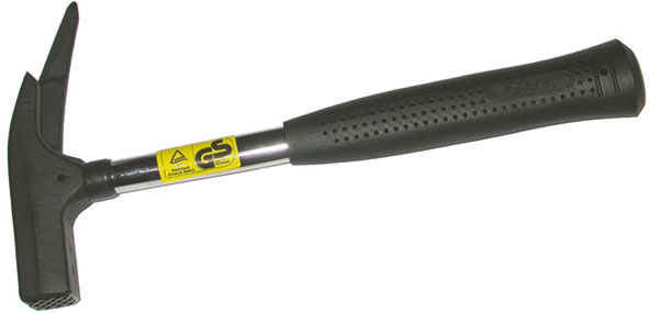 In acciaio forgiato. Parti battenti temprate.Manico in tubo d’acciaio con impugnatura anatomica in materiale sintetico morbido. Testa spinata, con portachiodo magnetico, laccata nera. Peso g 600.